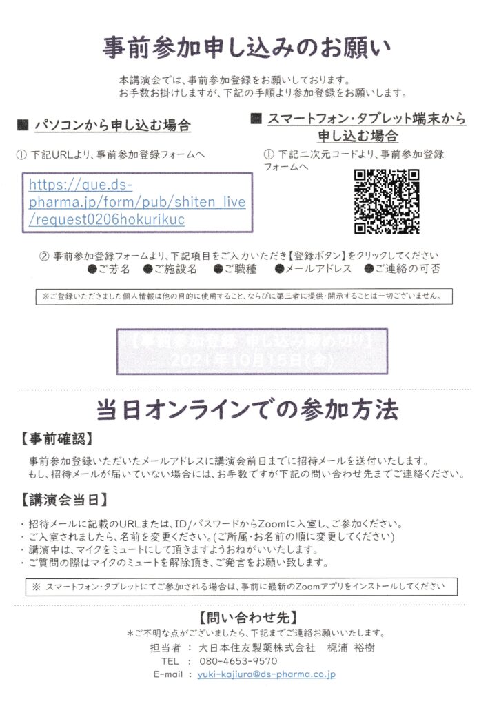 大日本住友製薬株式会が主催のWEBセミナーのご案内です。単位は付与されませんが、お時間のある方は是非参加を! セミナー座長・演者は以前当会で講師をしてくださった先生方です!