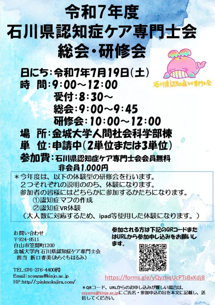 令和7年度石川県認知症ケア専門士会総会・研修会のお知らせ